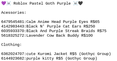 If you find this site serviceableness, please support us by sharing this posts to your preference social media accounts like Facebook, Instagram and so on or you can also Get this blog page with the title Sanriocore Outfits Roblox by using Ctrl + D for devices a laptop with a Windows operating system or Command + D for laptops with an Apple operating system. If you use a smartphone, you can also use the drawer menu of the browser you are using. Whether it's a Windows, Mac, iOS or Android operating system, you will still be able to bookmark this website.